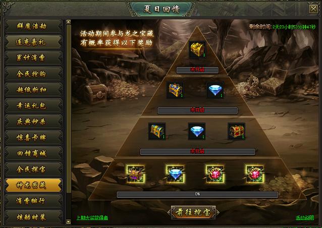 活动说明:活动期间,参与龙之宝藏则有几率额外获得神龙密藏的物品
